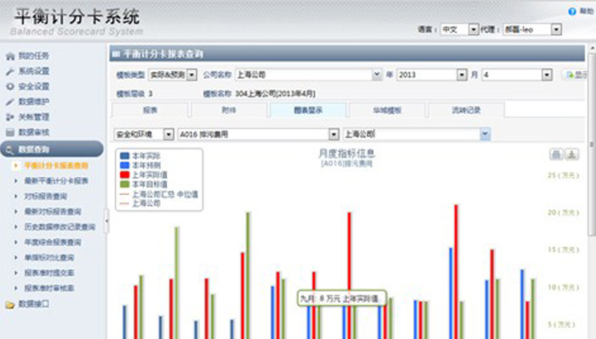 系統實現了基于平衡積分卡理念的公司戰略層管理,將組織的戰略落實為可操作的衡量指標和目標值,并在系統中進行預測、填報、審批和數據分析,用來與預期管理目標進行比對,以便于獲取真實的目標數據值來調節公司的戰略。