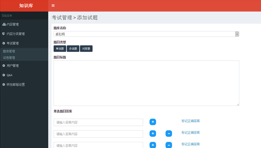 知識庫系統用來幫助朝陽財富公司理財師了解并熟悉本公司的產品及其金融行業相關知識。系統基于微信企業號開發,實現了理財師在移動端的知識庫查詢,在線答題考試,在線問答(Q&A)等。系統后臺用來管理知識庫內容,考試題庫和企業號用戶管理等。