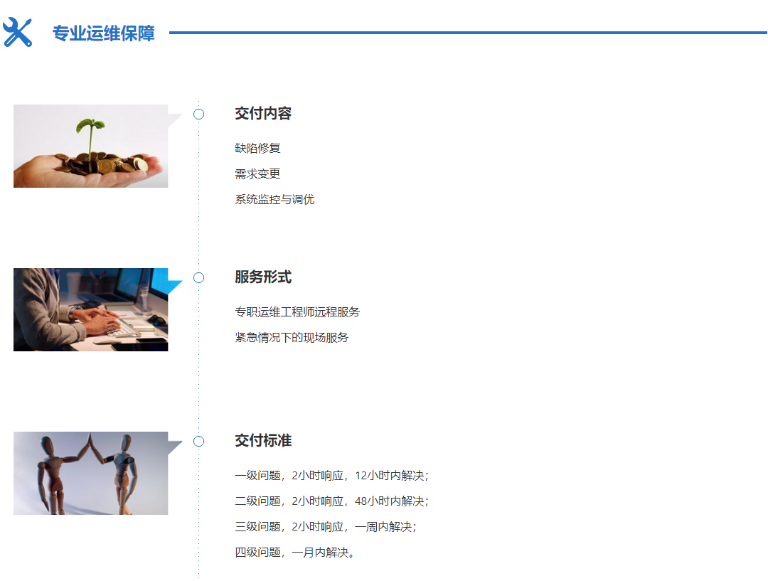 互聯網應用研發、運維一體化服務,面向具有明確的信息系統建設需求的企業,提供快速交付軟件產品服務,并可根據企業需求進行后期迭代式開發服務。